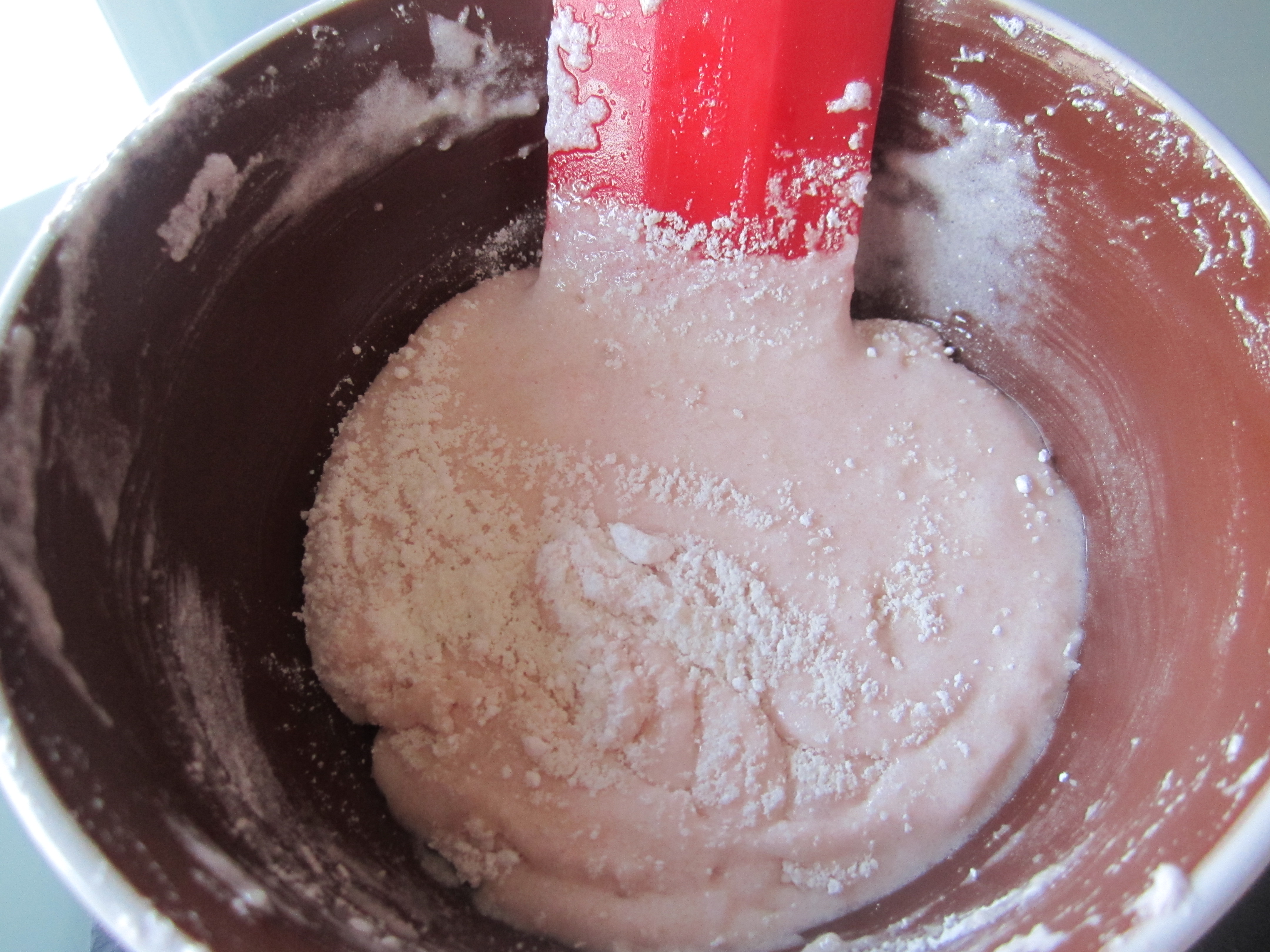 5. Con la ayuda de la espátula, mezcla delicadamente con movimientos envolventes hasta incorporar toda la mezcla.