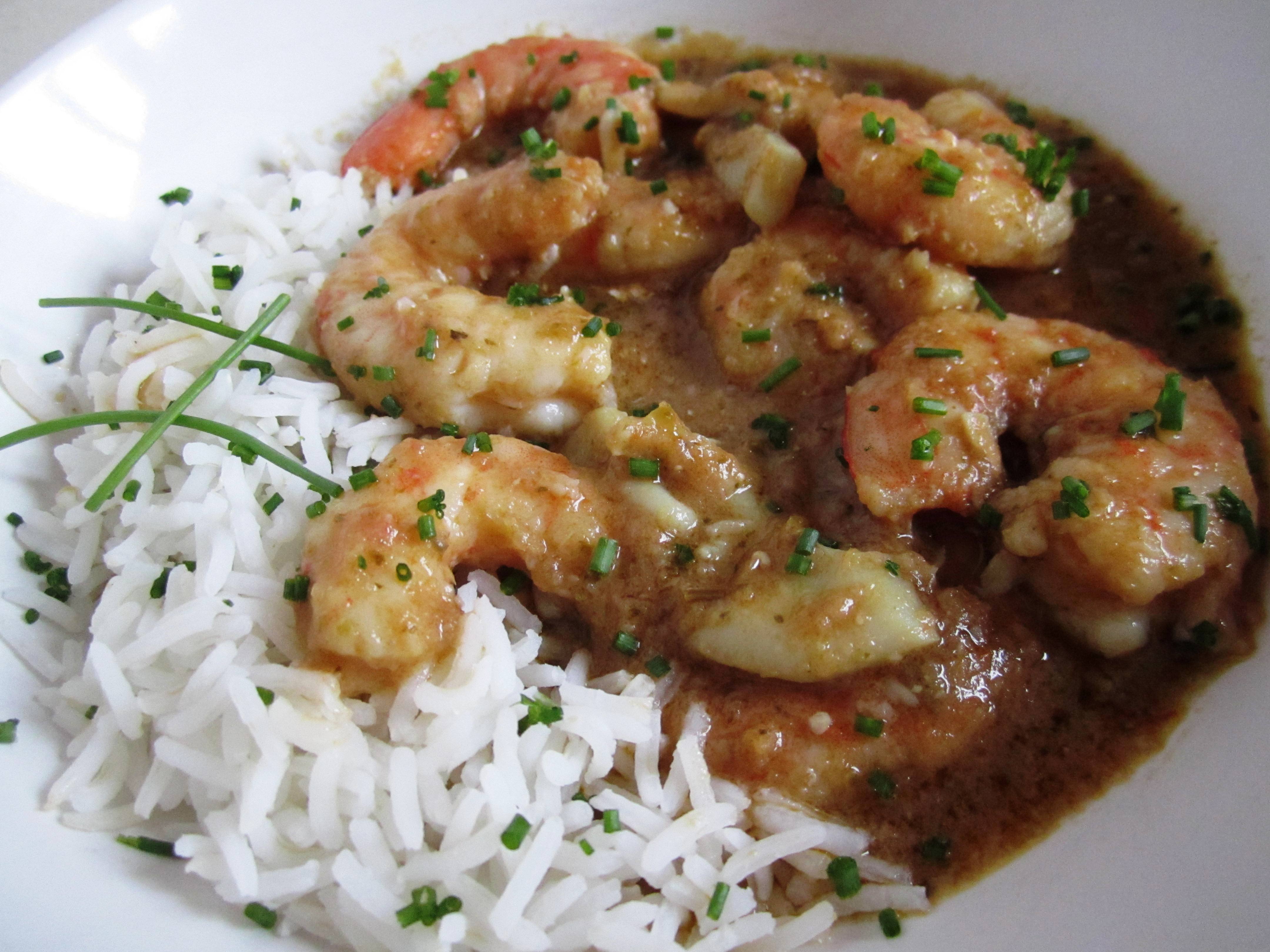 5. Añade el pescado, el gambón y la pimienta de cayena 3 minutos, 90 grados, giro a la izquierda, velocidad cuchara. Espolvorea con el cebollino y sirve con el arroz.
