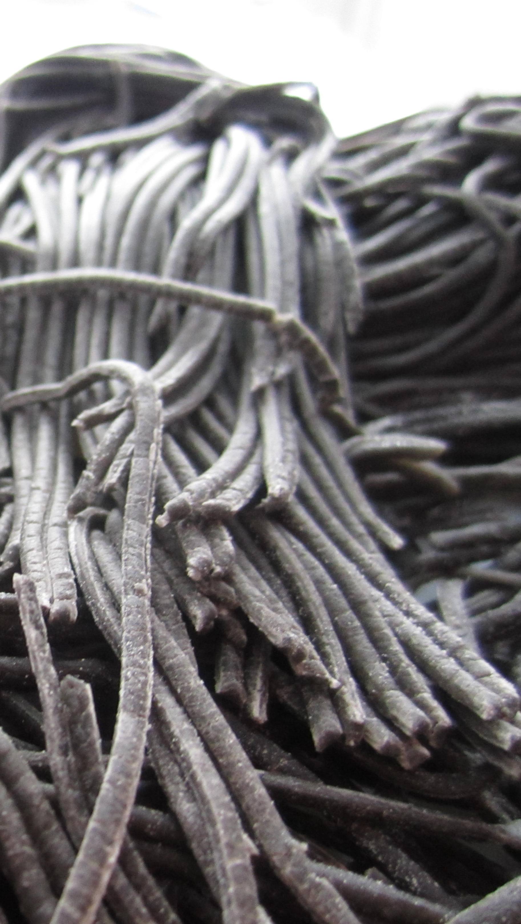 Puede que la Nero di Seppia sea la pasta preferida de mi hijo, no os podéis imaginar el salto que dio al ver toda la pasta extendida en la mesa.