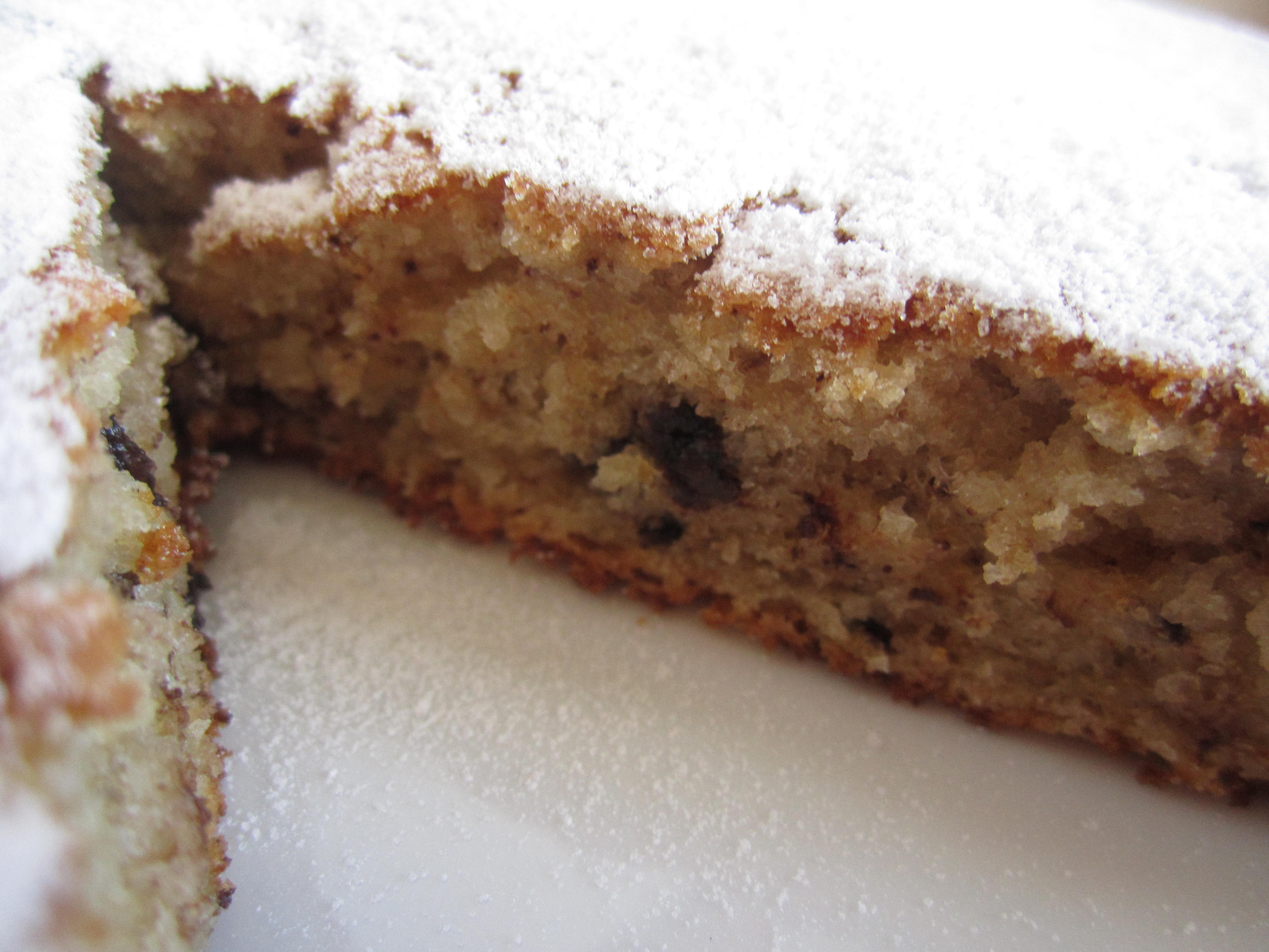 La de veces que he dejado agonizar al ultimo plátano de mi frutero, pero hoy a tenido un lugar mucho más digno que el olvido, mi bizcocho con nueces, y para animarlo un poco le puse unas pepitas de chocolate, vamos fácil y sabroso, para que luego no se diga.