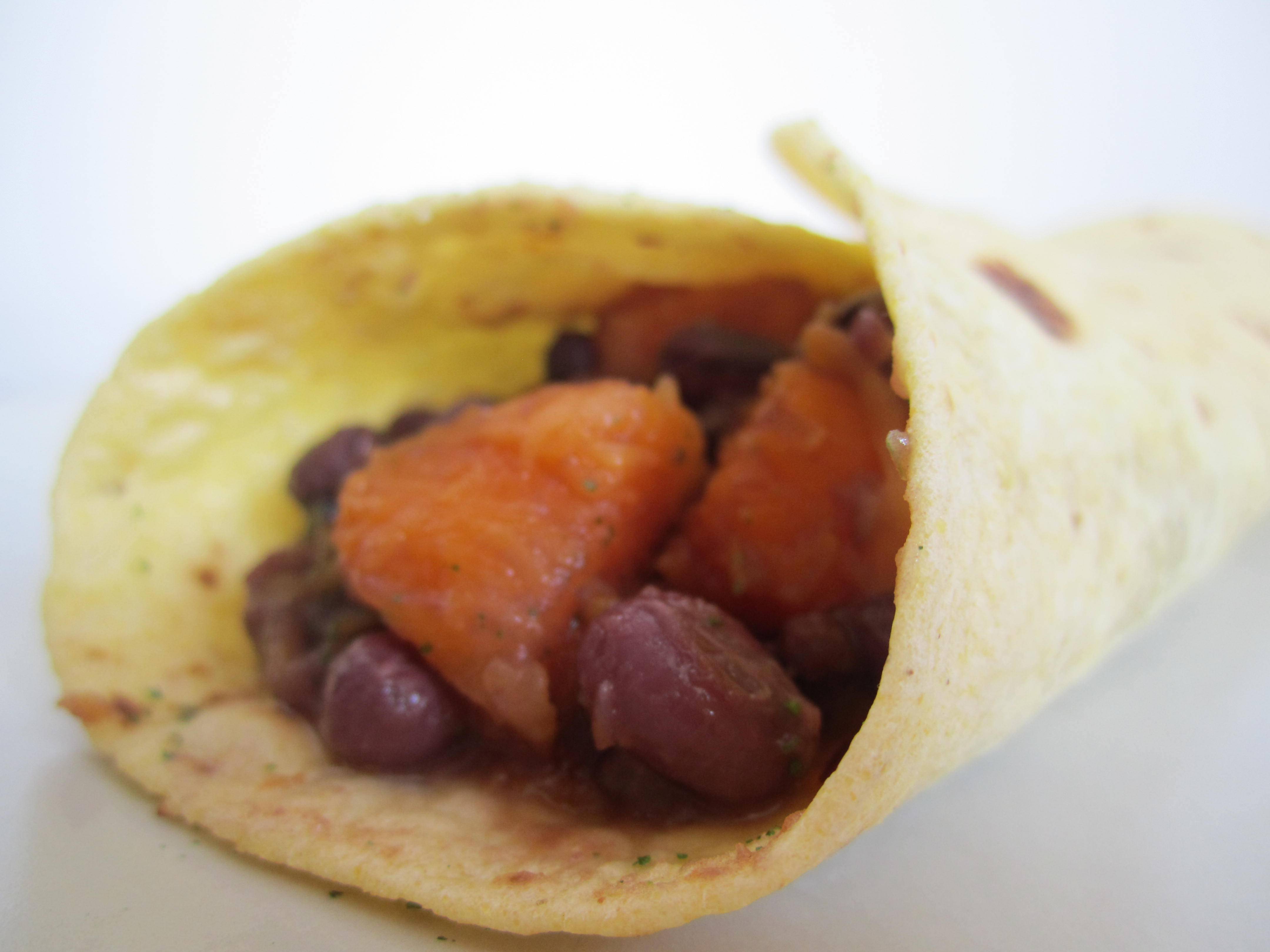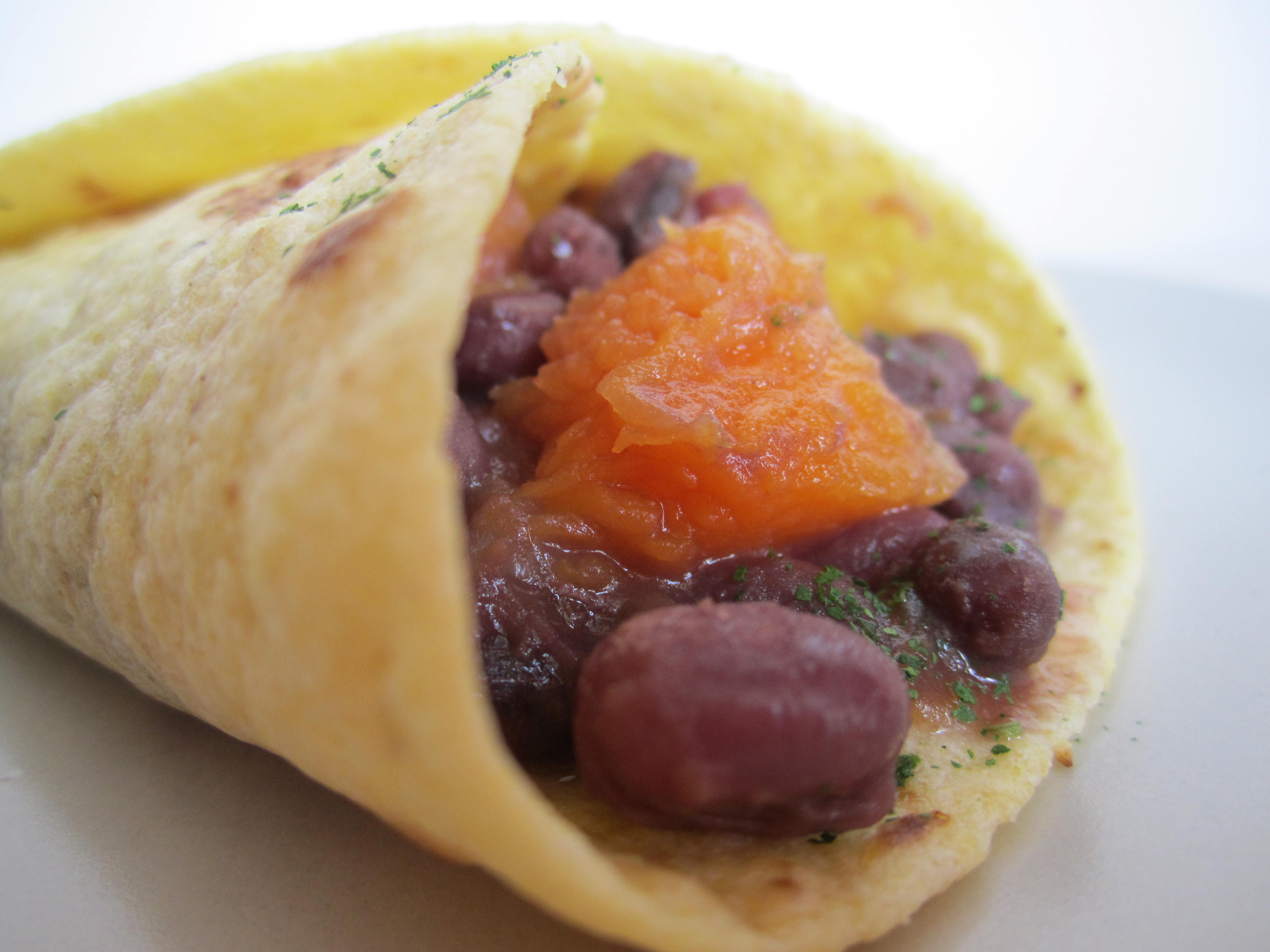 5. Pon la calabaza en un bol, los azuki en otro y las tortillas envueltas en un trapo de algodón y sírvelo así para que cada uno ponga la cantidad que le apetezca de cada cosa en su tortilla. Es imprescindible comer en buena compañía y con una sonrisa.