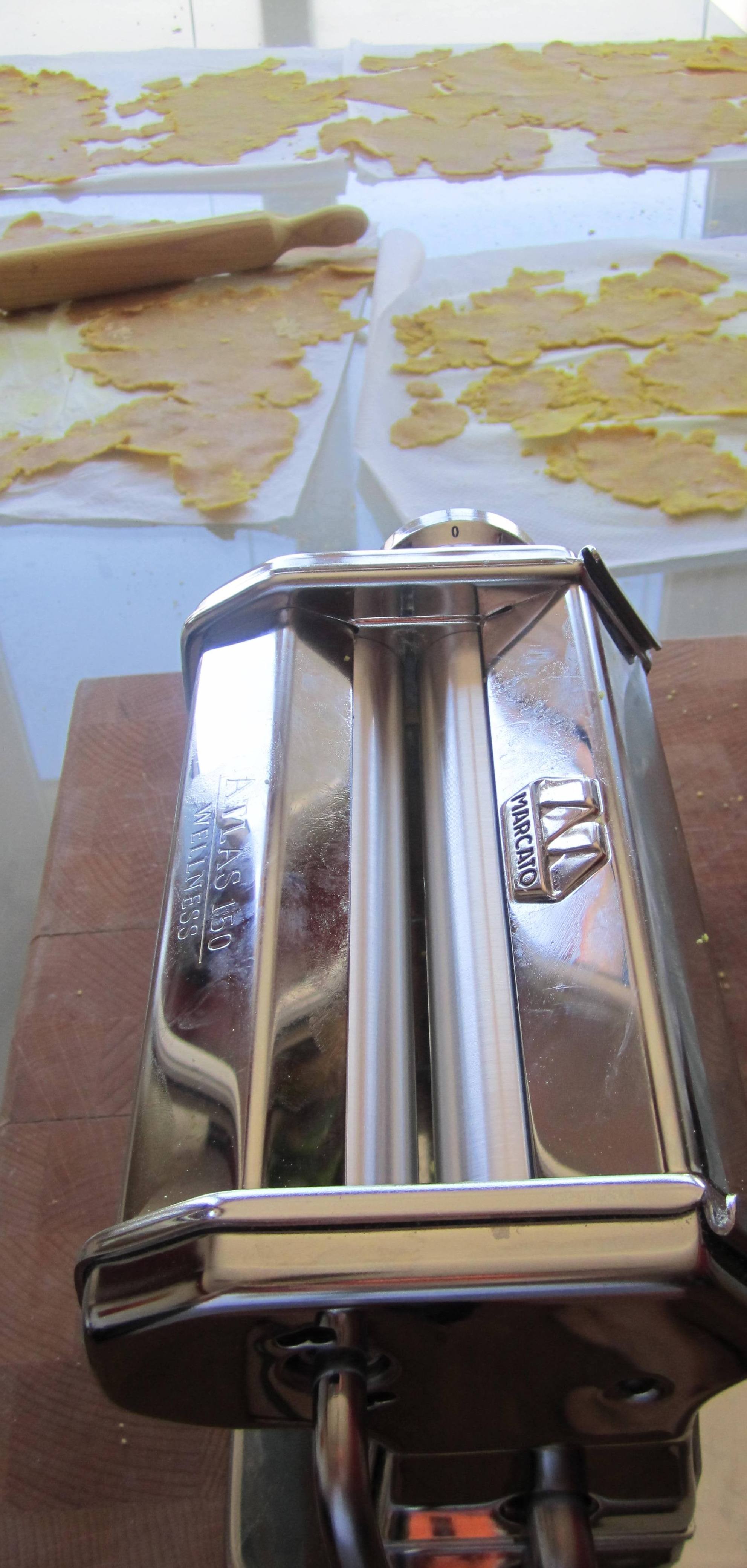 5.  Si usas una maquina corta-pastas utiliza pequeñas porciones de la masa y ajusta el grosor a tu gusto.