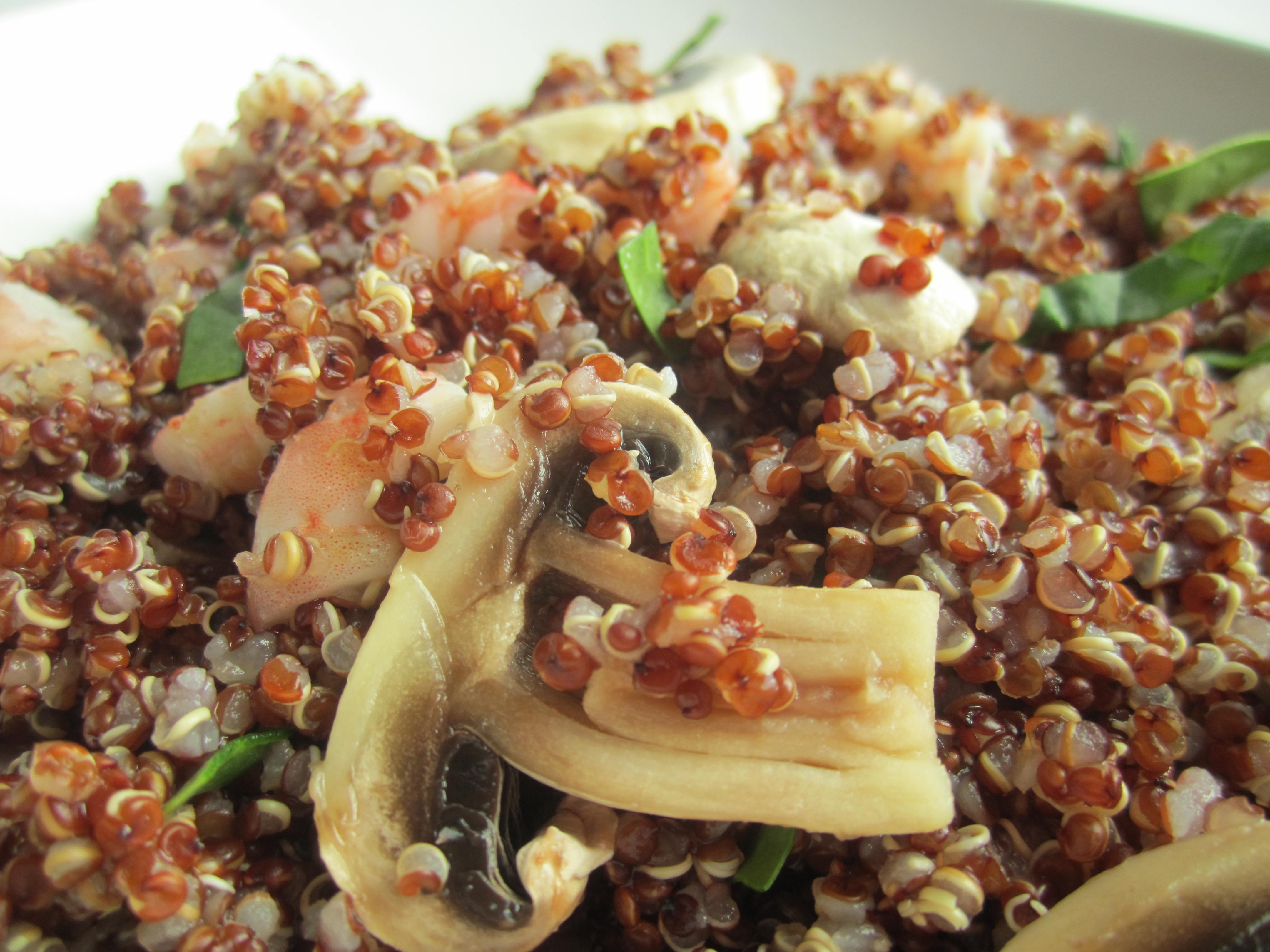 Qué ganas tenía de volver a preparar un post sobre quinoa! Acabo de descubrir una nueva variedad y estaba deseando probarla. El sabor es el mismo, pero tiene un color tan otoñal… Si quieres transformar esta receta en vegetariana puedes cambiar las gambas por unos trocitos de calabaza. O pincha aquí y descubre más recetas de quinoa diferentes.