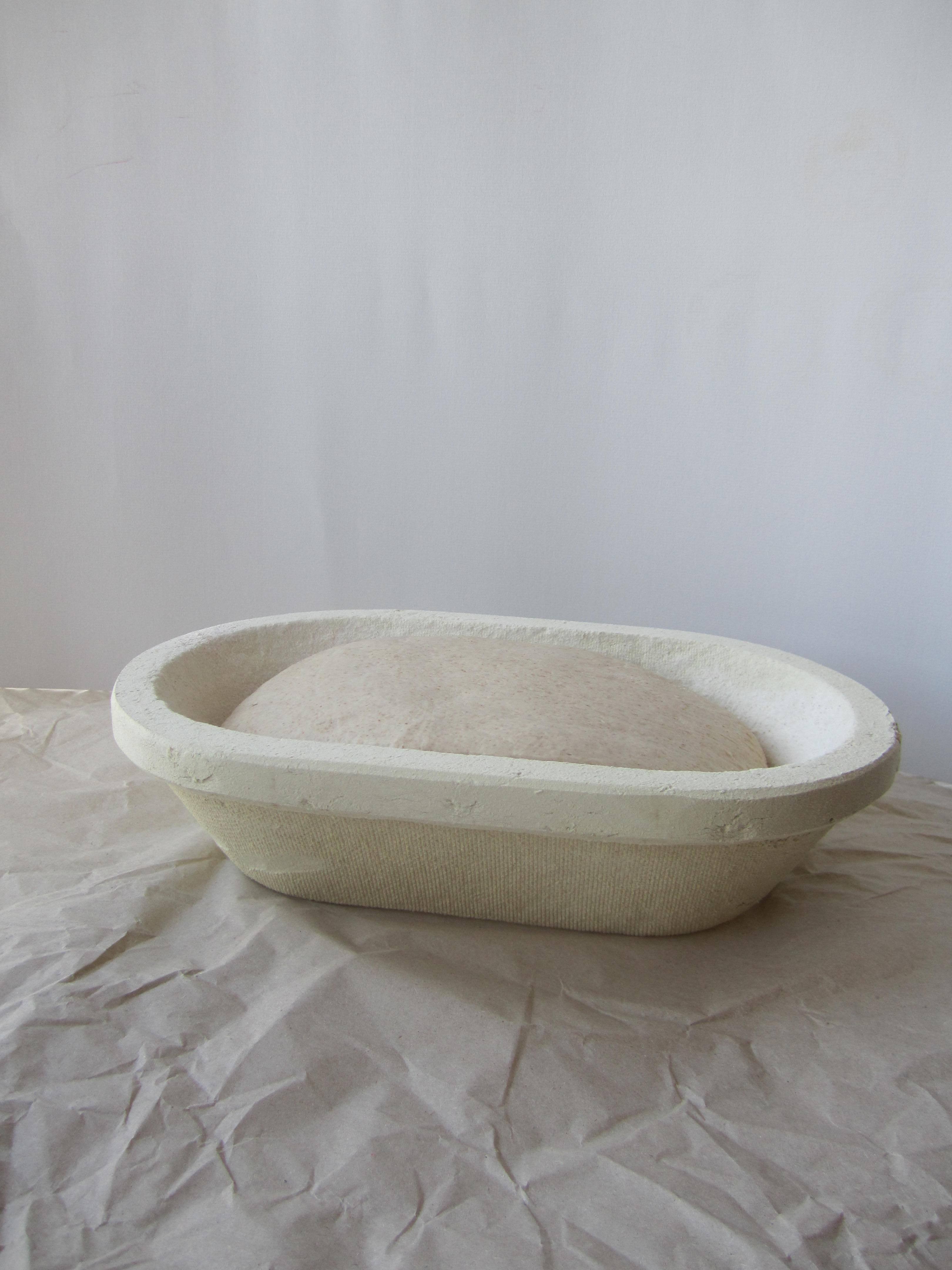 2- Pon harina en la encimera para evitar que se pegue y da la forma que más te guste (hogaza redonda, barra, chapata…) y deja nuevamente fermentar sobre un paño limpio bien enharinado o dentro de un cesto de fermentación. Si no tienes cesto ponlo sobre un bol, siempre sobre el paño de lino o algodón y con una buena capa de harina para que no se pegue.