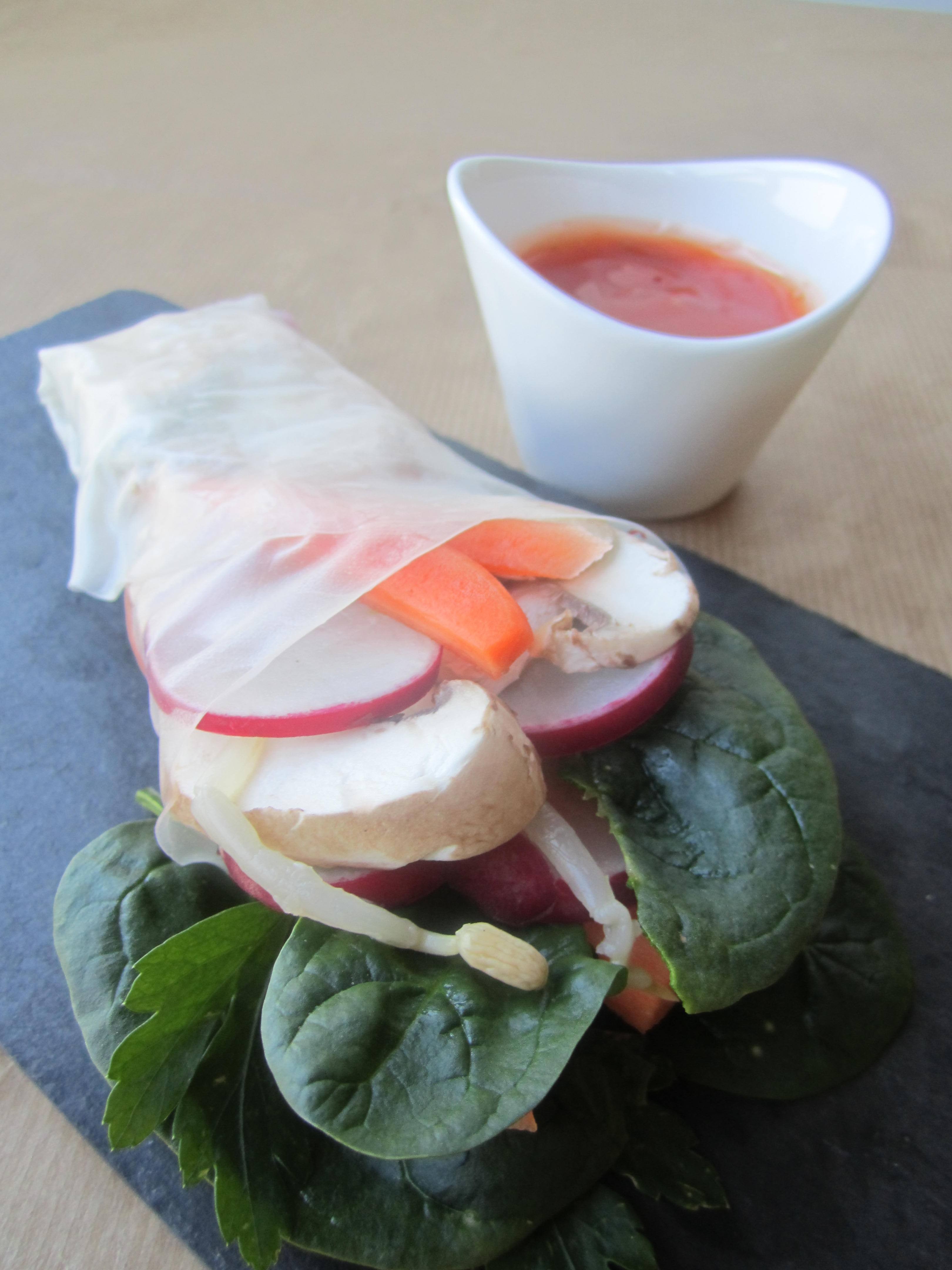 1- Lava y corta los ingredientes a tu gusto, envuelve en papel de arroz y sirve tu salsa thailandesa favorita. Mi receta la encontré aquí.