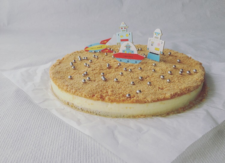 5- Forra la base del molde con papel de horno si usas como yo un molde redondo desmontable. Vierte más de la mitad de los bizcochos de soletilla con mantequilla en la base y cubre bien, presiona con el cubitete un poco para que se una mejor. La otra mitad resérvala para poner por encima. Introduce en la nevera el molde para que la base se «endurezca» un poco al enfriar.