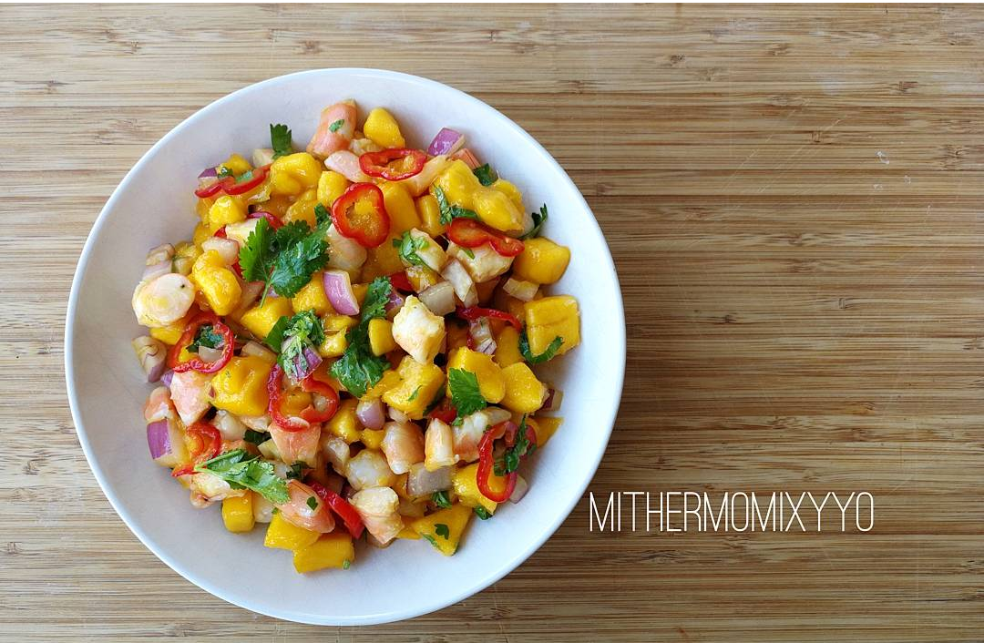 3- Pela el mango y cortarlo en dados gruesos. Añade el zumo de lima y la guindilla picada y despepitada. Ahora sólo tienes que salar y remover.